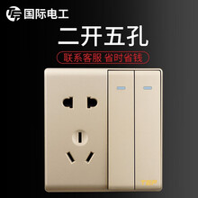 TEP国际电工 开关插座86型暗装家用金色开关面板一开五孔双控带双usb 16a空调插座面板 二开五孔双