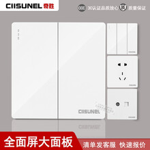 奇胜二开单控双开全面屏大面板86型家用暗装二位单联CIISUNEL墙壁开关插座