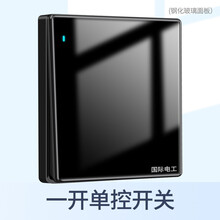 国际电工 家用86型黑色镜面钢化玻璃防刮花开关插座面板五孔插座墙壁暗装5孔 一开单控开关