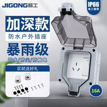 际工 户外防水开关插座一开三孔16A大功率 卫生间浴室电源插座防水盒明装室外防暴雨 三孔一开(16A)