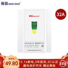 南岛空调漏电保护器空气开关家用家电32A/2P/3P柜机40A防触电开关适合86型底盒 NE-KL3B-32A
