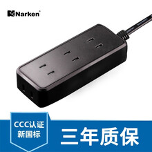 Narken南科两扁插头插排 二脚插线板 两扁二孔四位迷你排插 一转四手机充电延长线插座2米/5米 黑色5米
