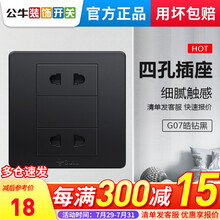 公牛插座07系列黑色4孔插两位2孔家用86型墙壁电源开关面板暗装开关插座黑色 四孔插座