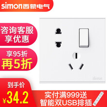 西蒙(SIMON)西蒙开关插座E6系列开关面板错位一开斜五孔带USB暗装86型家用官方旗舰官网店E3 E6雅白色错位五孔插座带一开单控