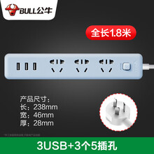 公牛插座两孔 双孔迷你排插家用宿舍学生手机笔记本充电器便携旅行床头充电多功能小型小巧带usb 【3USB+3五孔插座】【1.8米线长】蓝总控开关