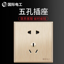 国际电工 开关插座面板家用86型五孔盖板拉丝大板香槟金 正位五孔