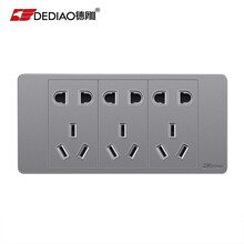 德雕(Dediao)118型高端灰开关插座 118三位15孔 三位小五孔电源插座 九孔插座三位三插 三位15孔