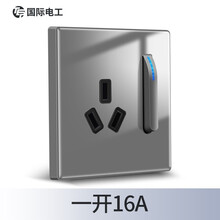 国际电工 灰色开关插座钢化玻璃面板一开五孔插座16A空调插座钢琴按键 空调插座带开关(16A)