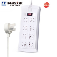 突破(TOP)插座插排插线板接线板8位1.8/3/5/10米总控开关防过载儿童保护超薄插头/办公家用 八位防过载/10米
