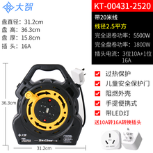 大智线盘插座移动电缆电线绕线盘卷盘电动汽车空调多功能插排插板蜗牛线盘封闭式线盘 00431-2520【2.5平方20米】