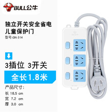 插座家用独立开关分控多位多功能拖接线板3米5电排插板带长线 三插节能1.8米-GN314