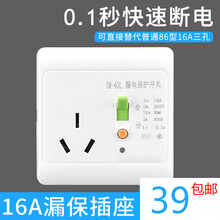 16A空调热水器漏电保护开关 家用漏保空气开关面板86型带插座暗装