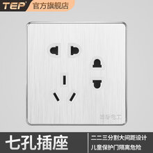 TEP国际电工86型开关插座面板多孔大板暗装灯电源墙壁式二三插5五孔带USB插拉丝白 七孔插座