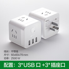 插座 魔方插头转换器面板多孔带usb接口18W快充PD智能插排USB插线板带线多功能家用充电桌面 【白色---无线】【3USB+3插座】