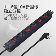 良工PDU插座机柜专用鱼缸插排五位独立分控开关铝合金排插可定制 1U-六插位独立分控-1.5平方1.8米10A插头