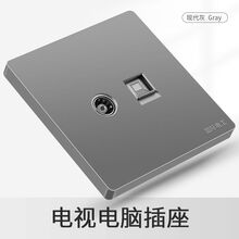 德极86型家用灰色开关插座面板一开带5五孔USB黑色多孔插座 电视电脑