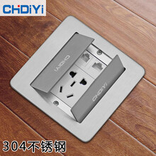 缔一(CHDIYI)双开门地插座304不锈钢家用防水隐藏式超薄多功能强电弱电五孔电话电脑网络地面插座 网络+电话+小五孔