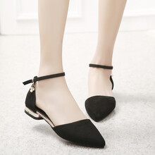 支持鴻星尔克 /不露脚趾包脚趾头的平底舒适包头凉鞋女士春夏季平跟一字扣低跟女单鞋尖头大小码学生鞋 黑色 40 偏小一码