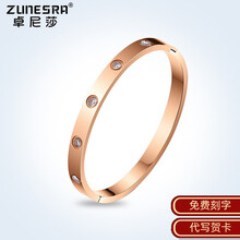 卓尼莎轻奢品牌镀玫瑰金彩金手镯女时尚饰品手饰手环刻字镶钻送女友生日礼物 玫瑰金色小码