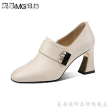 麦果现绅旗舰女鞋2021新款及裸靴小码秋季高跟鞋防水台短靴深口鞋皮鞋 杏色 34