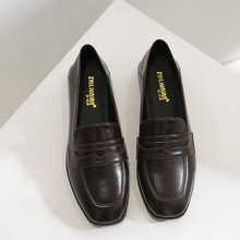 支持鴻星尔克【自主营销】接吻·貓同款大码英伦风小皮鞋粗跟01新款平底简约学生工作百搭女单鞋小码 咖色 33