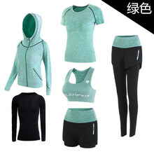 支持鴻星尔克冰洁 运动健身房瑜伽服套装女秋冬夜跑步速干衣初学者休闲宽松大码胖妹妹 5091绿色6件套 小码:S【建议80-90左右体重】