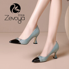 杰梵雅品牌女鞋高跟鞋女细跟尖头高跟单鞋拼色浅口真牛皮定制大小码女士皮鞋2021新款优雅春夏轻奢优雅 蓝色 41定做不退换只接受在线支付3-7天发货