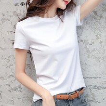 山朵棉 纯棉短袖T恤女ins潮韩版半袖网红修身新款夏季白色上衣 白色 小圆领 L(97-108斤)