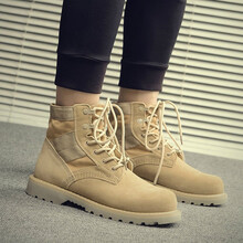 男靴马丁靴男女靴子春季高帮男鞋夏天英伦复古中帮短靴沙漠工装小码情侣加绒二棉鞋男 1602 米色单鞋 41