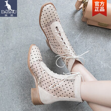 袋鼠(DaiShu)轻奢高端2021春夏季新款大码小码绑带凉靴波点镂空网纱透气网靴及踝靴短靴 杏色 37