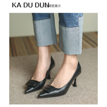 KADUDUN 夏季新款商务鞋子女年高跟鞋软皮尖头细跟32单鞋百搭小码皮鞋31款 大气黑色 35