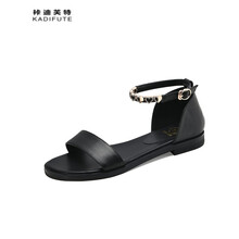 裃迪芙特 水钻 凉鞋女2021年夏季新款仙女风平底百搭一字罗马女鞋大小码 黑色 37
