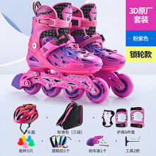 乐秀KX酷星轮滑鞋儿童专业品牌溜冰鞋全套装初学者男女中大童滑轮 【锁轮款】粉紫3D原厂 S小码(28-31适合3-7岁)