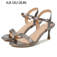 KADUDUN 夏季新款一字扣凉鞋女细跟6cm露趾大码中跟女凉鞋百搭小码 灰色珠光皮6厘米 33