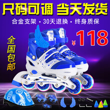 儿童溜冰鞋小孩全套装8轮全闪女3-4-5-6-7-10-12岁女童滑旱冰鞋 蓝色套装【包含:单肩包+头盔+护具6件套+大礼包】 小码(31-34)适合平时鞋码26-33