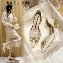 KADUDUN 夏季新款小码女鞋313233单鞋包头凉鞋女夏中跟细跟高跟鞋设计感小众仙女风 杏色 31