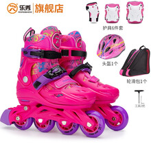 乐秀R906溜冰鞋大小儿童中大童初学者专业旱冰鞋男女滑冰鞋轮滑鞋 暮息粉原厂护具套装 S小码(28-31适合3-6岁)