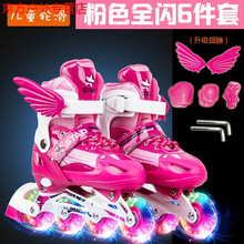搭啵兔双排溜冰鞋儿童全套装可调闪光直排轮小孩轮滑鞋滑冰鞋旱冰鞋男童女童 八轮全闪鞋一双+护具六件套+扳手翅膀 红色小码(26-32码可调节大小)