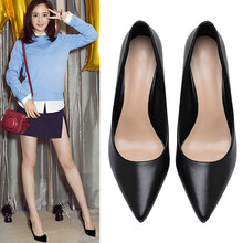 【内外羊皮】正装真皮高跟鞋女细跟尖头5CM酒店工作鞋中跟礼仪皮鞋面试黑色职业单鞋小码女鞋红色伴娘婚鞋 黑色 36(跟高5.5CM