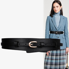 紫心竹腰带女装饰裙子配西装大衣腰封女毛衣束腰连衣裙子收腰真皮时尚黑色宽腰带 黑色小码