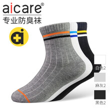 aicare防臭儿童袜子男棉袜小码中筒男女孩春夏季学生运动袜 2黑2白2麻灰 L码(建议32-34码)