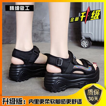 ℘奥帝伦 ℘老爹凉鞋女年夏季新款百搭厚底松糕鞋软底仙女高跟小码沙滩鞋CC 黑色升级版 38