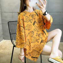 【新品上市】特超大码女装胖mm240斤短袖t恤女宽松显瘦300斤棉半袖上衣服200 502-小熊-黄色 4XL 210-300斤