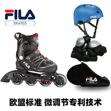 FILA儿童专业轮滑鞋溜冰鞋初学者滑轮鞋滑冰鞋男女旱冰鞋小中大童平花高端直排轮滑装备可调大小码全套装 红色全套(头盔护具轮滑包) M(32-35)