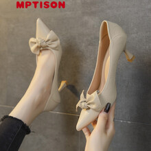 MPTISON轻奢百搭高跟鞋女细跟黑色职业尖头设计感软皮小码时装通勤仙女单鞋舒适时尚 杏色 5.5CM 31