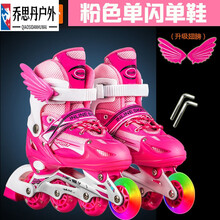 溜冰鞋儿童全套装可调闪光直排轮小孩轮滑鞋滑冰鞋旱冰鞋男童女童 粉色小码(26-32码可调节大小) 背包款-八轮全闪套装+头盔护具+礼包