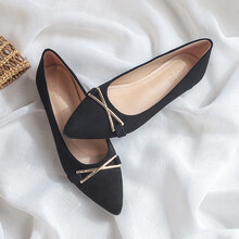 平底单鞋女一脚蹬瓢鞋小码春季新款浅口尖头四季鞋仙软面加大码44 黑色 34