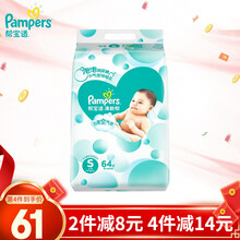 帮宝适(Pampers)清新帮泡泡纸尿裤男女宝宝通用一级帮尿不湿超薄透气婴儿尿裤 小码S64片【4-8kg】