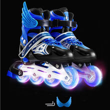 溜冰鞋儿童全套装男童女童成人直排轮旱冰鞋轮滑鞋滑冰鞋可调闪光 蓝八轮全闪鞋+翅膀扳手 小码S码(26-32码可调节)