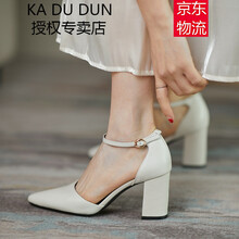 KADUDUN高跟鞋女新款秋季尖头粗跟单鞋一字带白色婚鞋小码女鞋 米白色 33